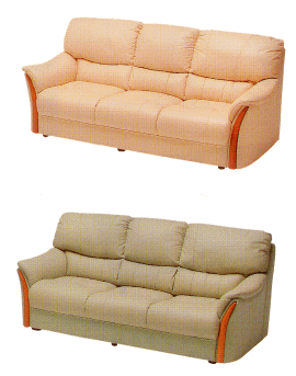木部がシャープなデザインの3人掛けソファー。